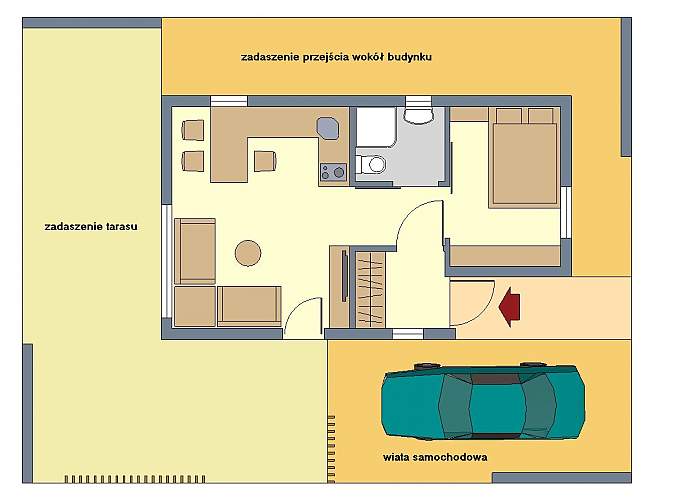 Niezaprzeczalnym atutem jest możliwość realizacji elementów dodatkowych w rodzaju zadaszenia wejścia czy tarasu a także wiaty samochodowej .
