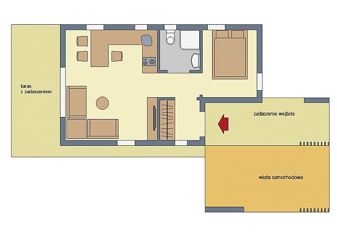 Niezaprzeczalnym atutem jest możliwość realizacji elementów dodatkowych wiaty samochodowej a także zadaszenia wejścia i tarasu