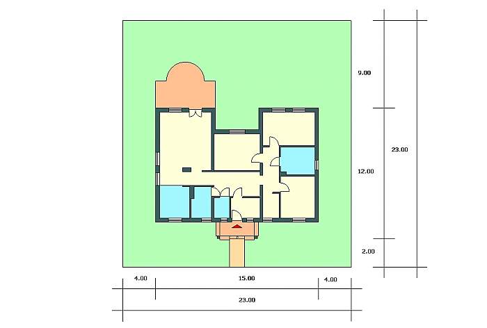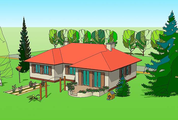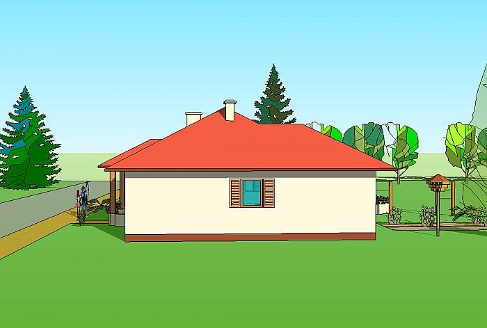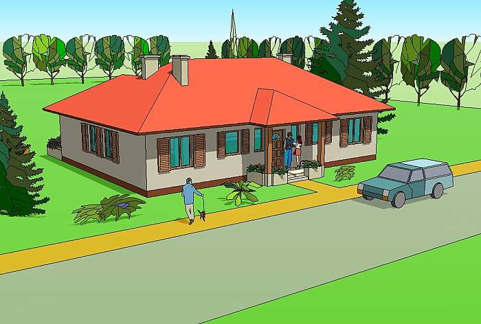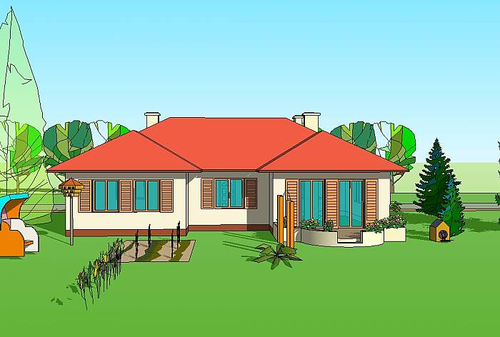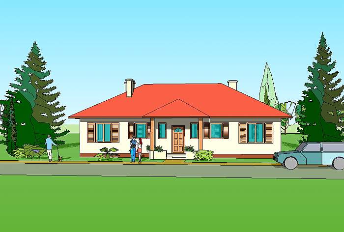 Nieduży dom parterowy, przeznaczony dla czteroosobowej rodziny.