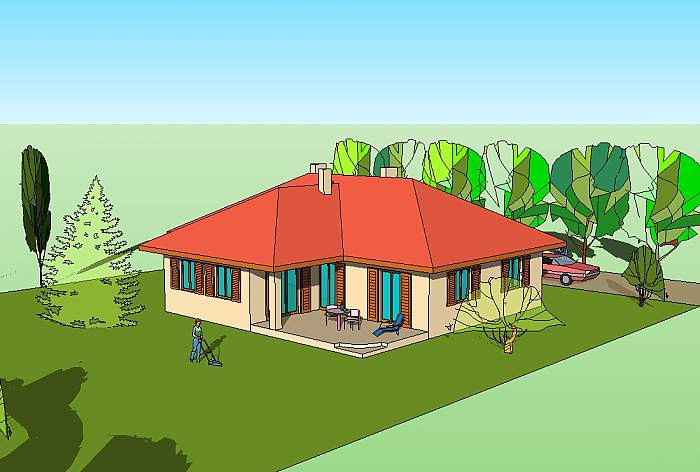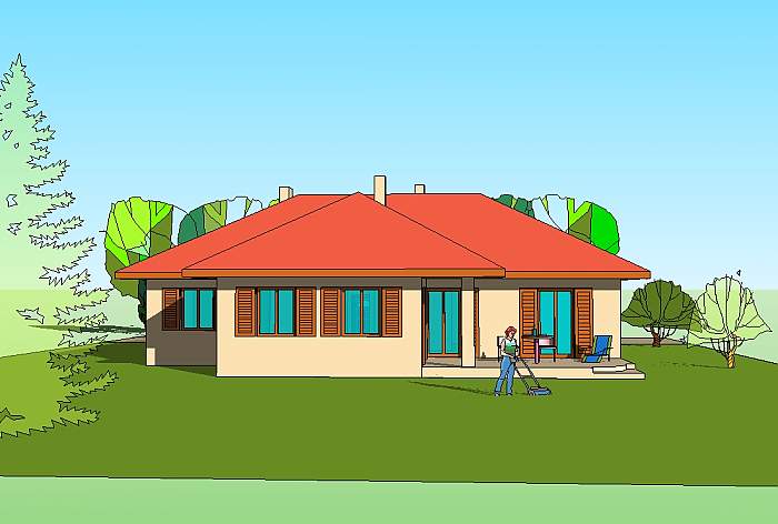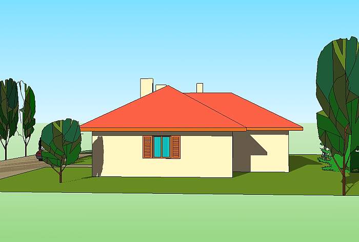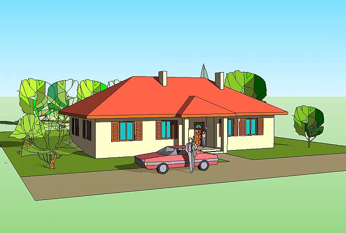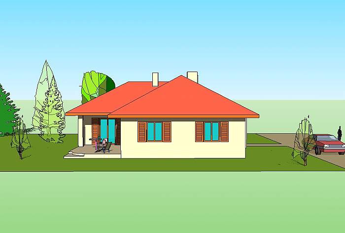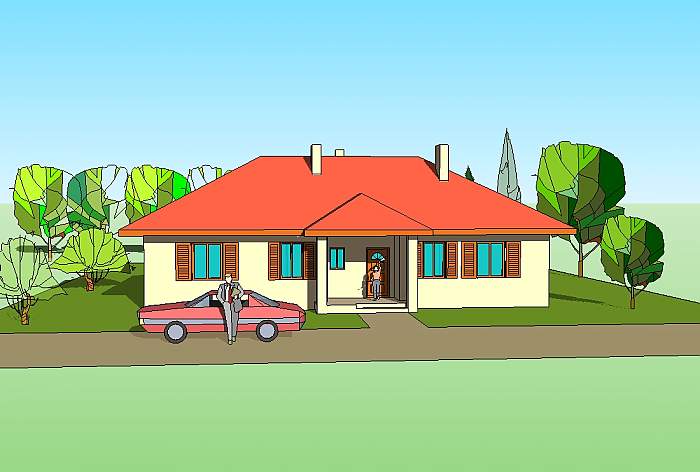 Średniej wielkości dom parterowy, przeznaczony dla czteroosobowej rodziny.