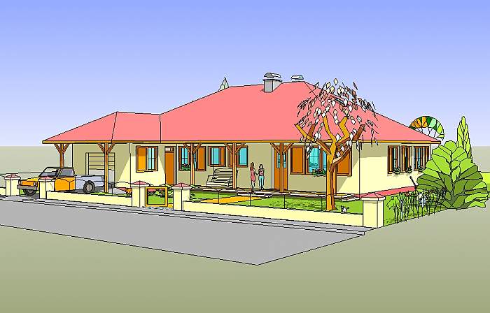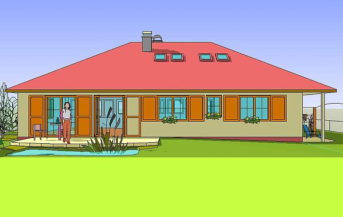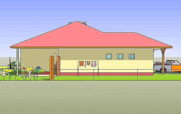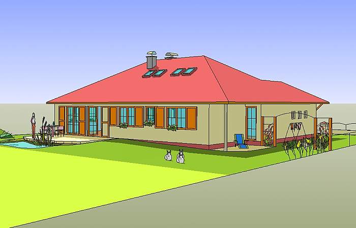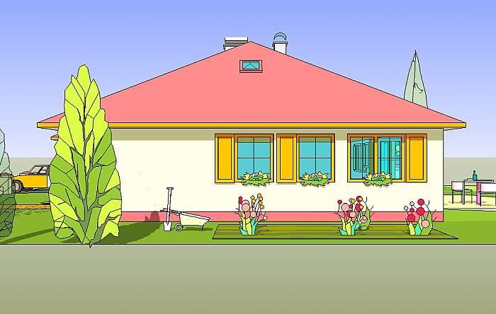 Średniej wielkości dom parterowy, przeznaczony dla czteroosobowej rodziny.