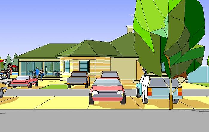 o przeznaczeniu go na duży , osiedlowy sklep samoobsługowy, lub wolno stojący pawilon restauracyjny z zapleczem kuchennym . Obie te funkcje można także łączyć, tworząc jeden wspólny obiekt handlowo – gastronomiczny.