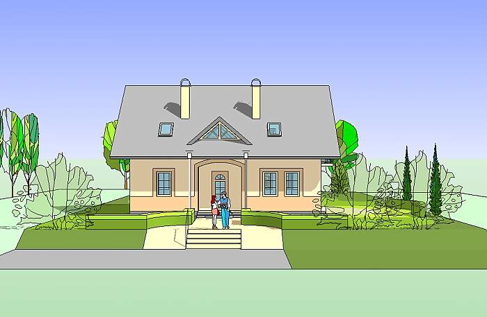 ŁĘCZYCA to nieduży , parterowy dom jednorodzinny z użytkowym poddaszem. Parter to jednoprzestrzenne wnętrze z hallem, kuchnią , jadalnią i pokojem rodzinnym z kominkiem, oraz wydzielone, dostępne z przedsionka wielofunkcyjne pomieszczenie gospodarcze.