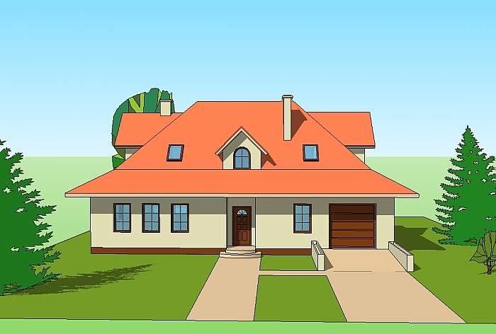 KORONOWO to duży dom jednorodzinny z użytkowym poddaszem o ciekawej, klasycznej architekturze, która z powodzeniem wpisze się w każde warunki lokalizacyjne.