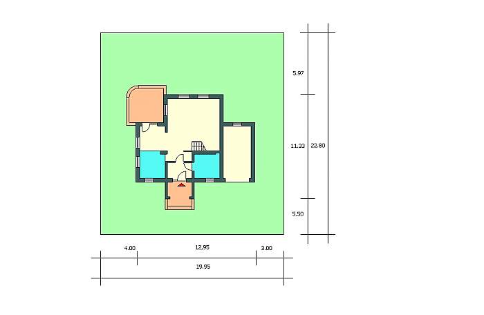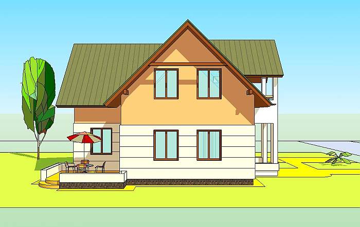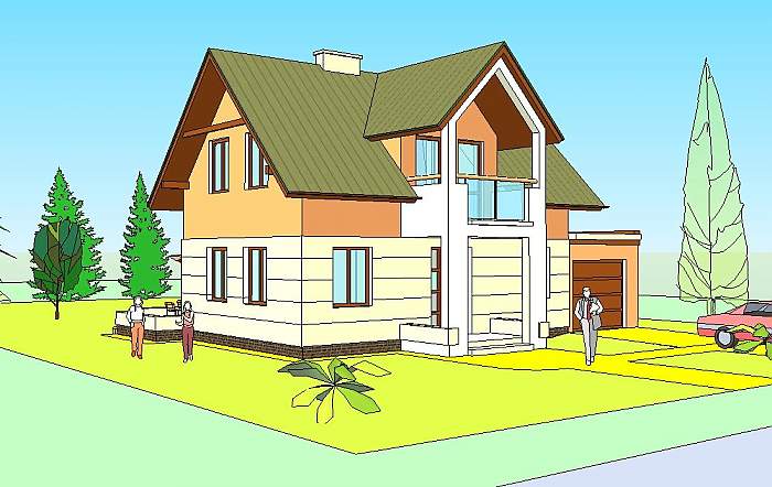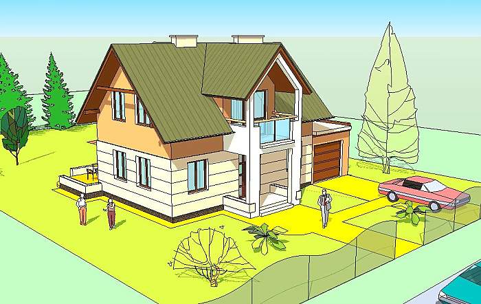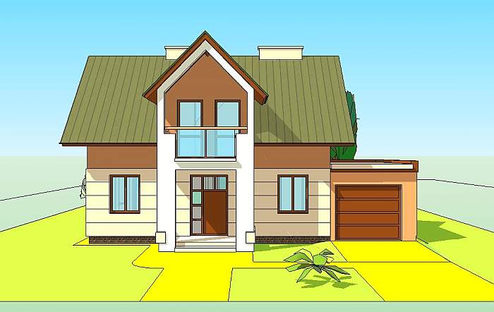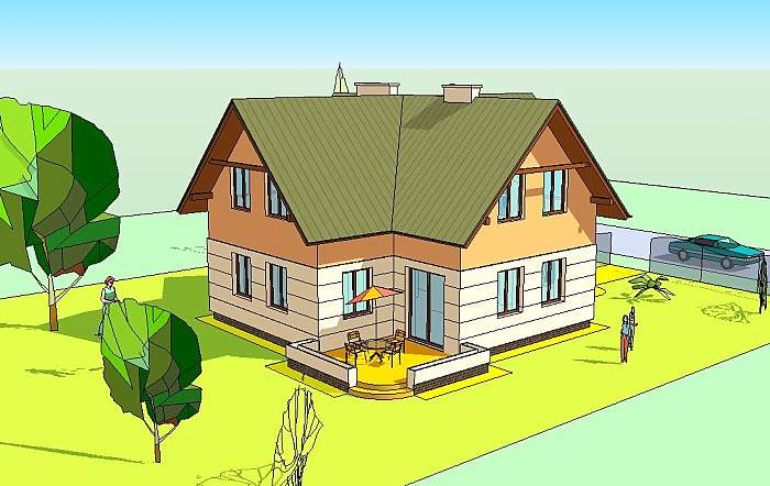 TORUŃ to nieduży dom jednorodzinny z użytkowym poddaszem, którego parter stanowi jednoprzestrzenna część dzienno – wypoczynkowa z hallem kuchnią, jadalnią i pokojem rodzinnym.