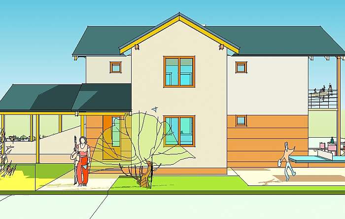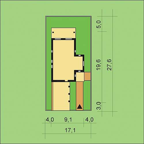 Niewielka szerokość budynku pozwoli wybudować go na stosunkowo wąskiej działce.