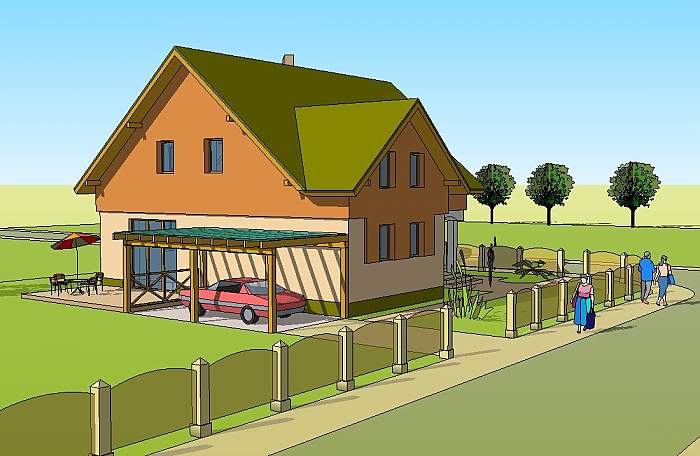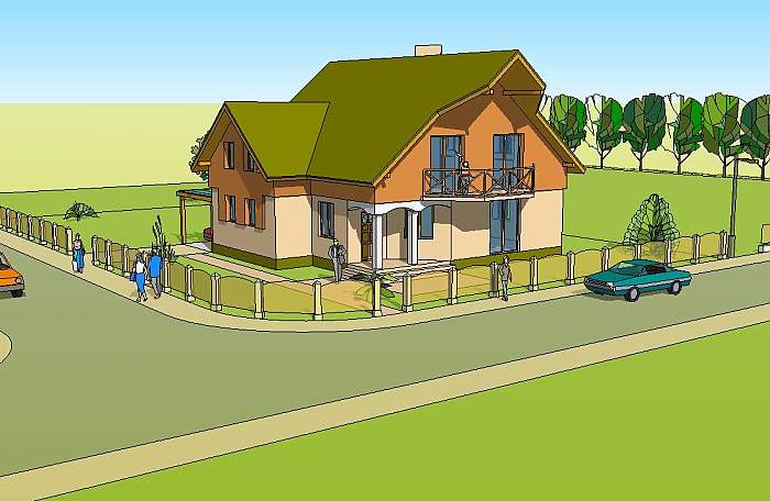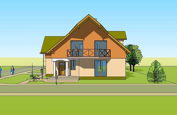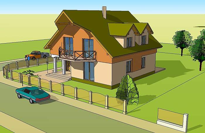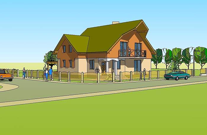 To średniej wielkości dom jednorodzinny przeznaczony dla rodziny cztero – pięcioosobowej.