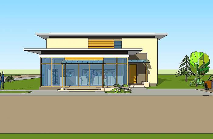 Na parterze zaprojektowano aptekę z pełnym zapleczem natomiast piętro jest prywatnym mieszkaniem właściciela, składającym się z pokoju rodzinnego, kuchni, dwóch sypialni, garderoby i dwóch łazienek.